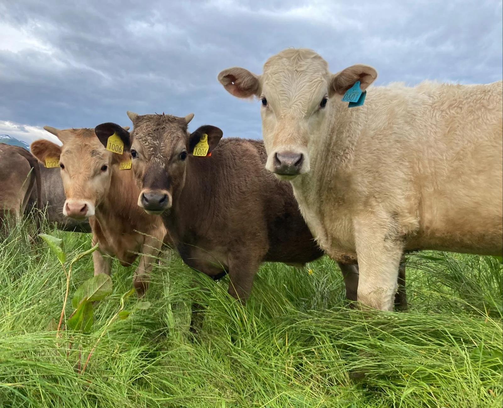 I vårt valg av dyr har vi tenkt på hvilket fotavtrykk de gir. Både direkte og indirekte. Vi har prøvd ut å ha to typer små kuraser: tiroler gråfe og vestlandsk fjordfe. Begge er ralativt små av vekst og klarer dermed godt å fote seg i inn- og utmark uten å gjøre store skader på jorda gjennom tråkk. I tillegg er de “altetende” og omdanner kratt og skau på fjellet til menneskemat.