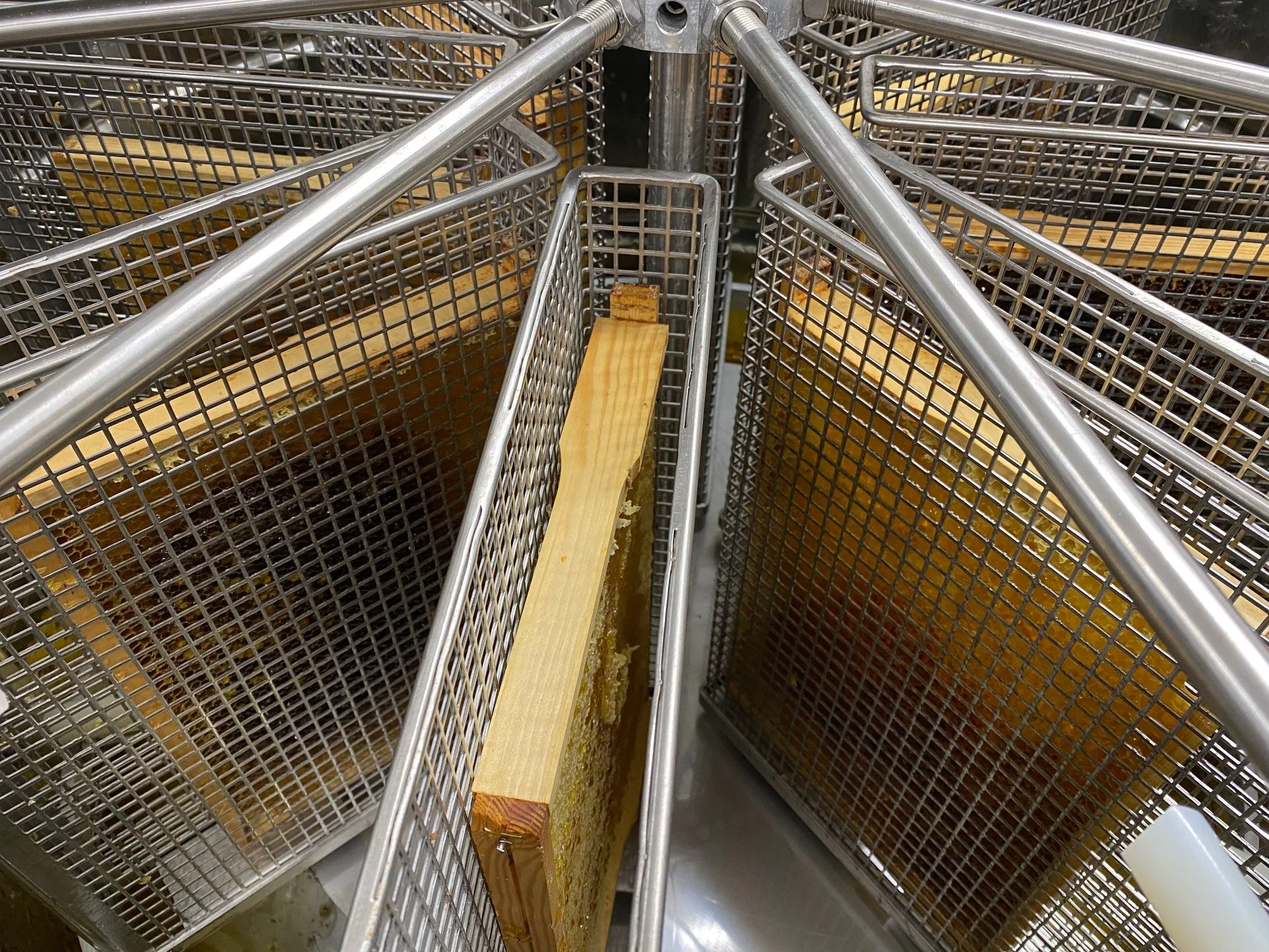 -Skrelle av voksforseglingen på rammene (dette gjør vi ved hjelp av en skrellemaskin)
